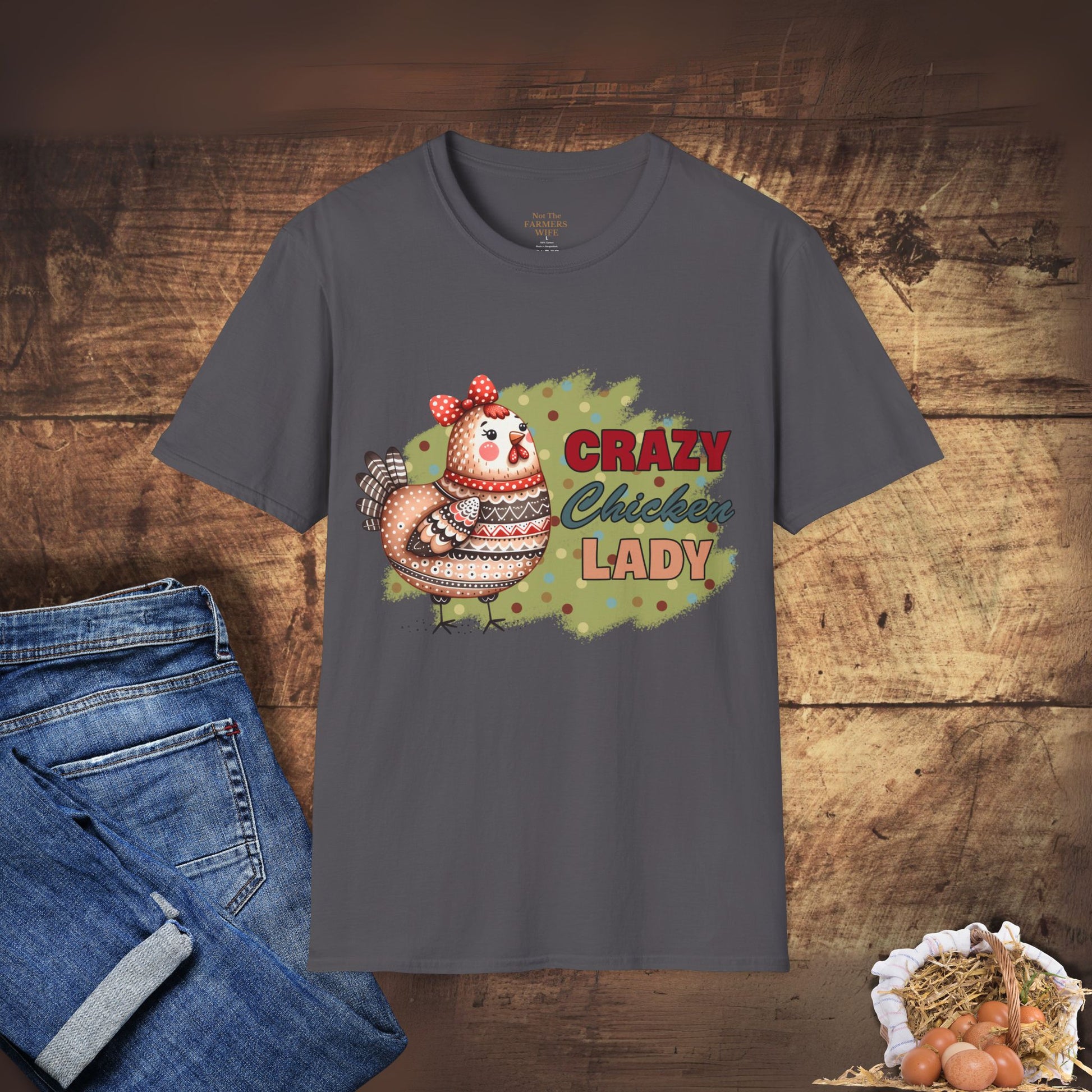 You know who you are — and this tee wears it proudly. Crazy Chicken Lady is for the women with names for all 32 hens, a brooder in the laundry, and a phone full of chicken selfies.