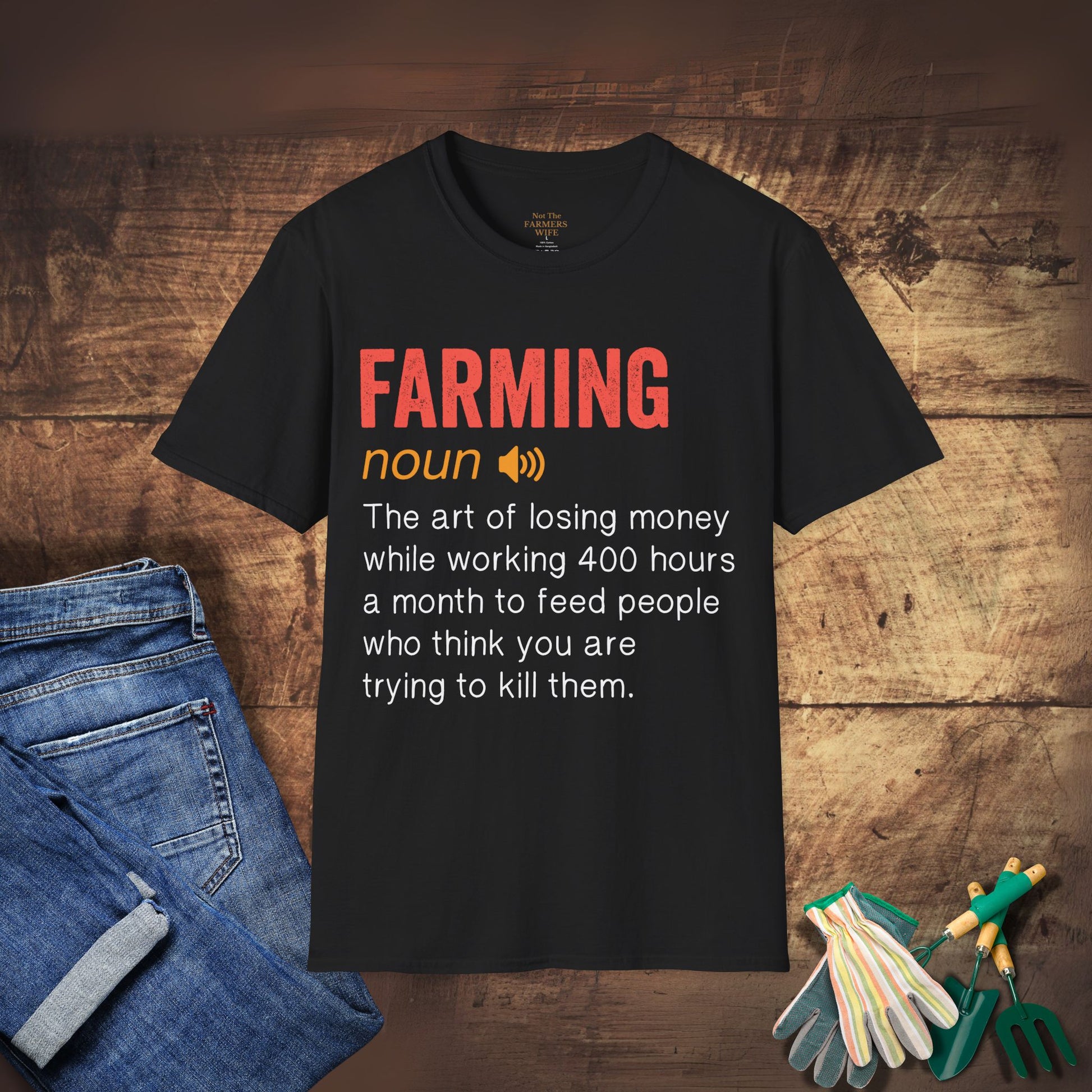 A painfully accurate definition for those living the ag life. This tee spells it out — 400-hour months, tight margins, and feeding the world while coping the criticism. Perfect for farmers with a dry sense of humour and zero time for nonsense. Comfortable, honest, and straight from the trenches.