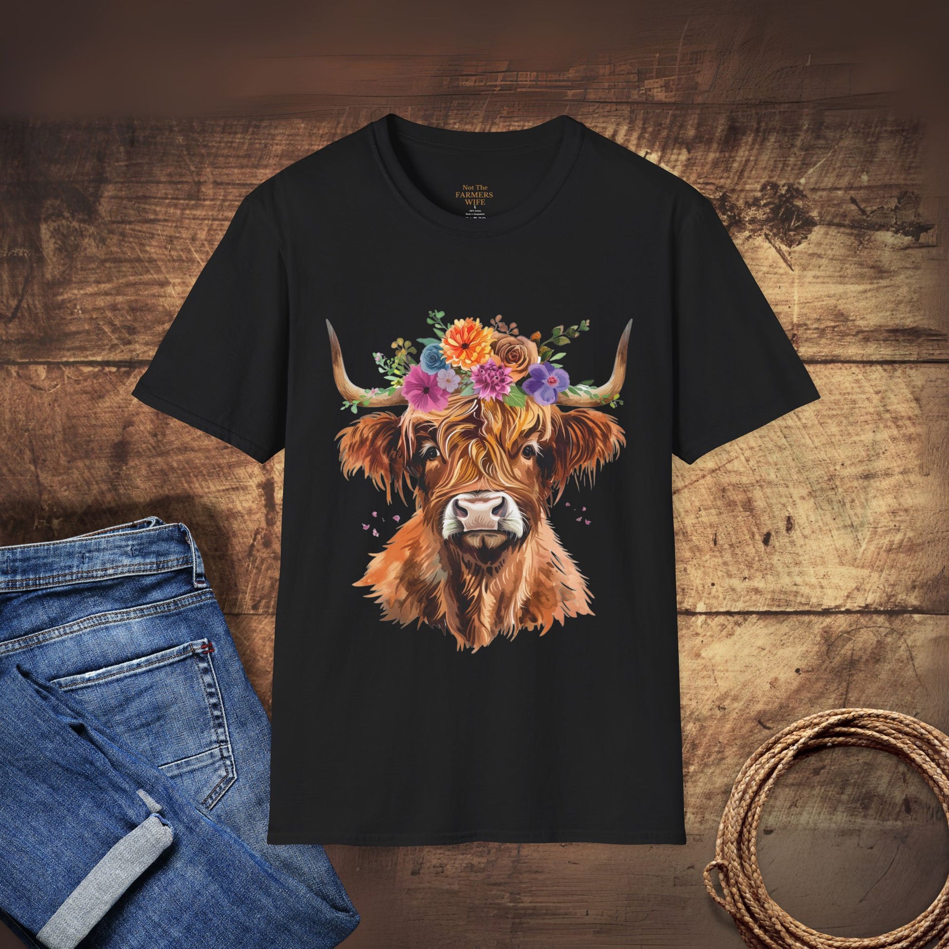 Strong, serene, and a little bit wild — just like the women who wear it. Featuring a beautifully illustrated highland cow with flowers in her mane, this tee blends country charm with feminine flair. Soft, stylish, and perfect for farm girls with a soft spot for horned beauties.