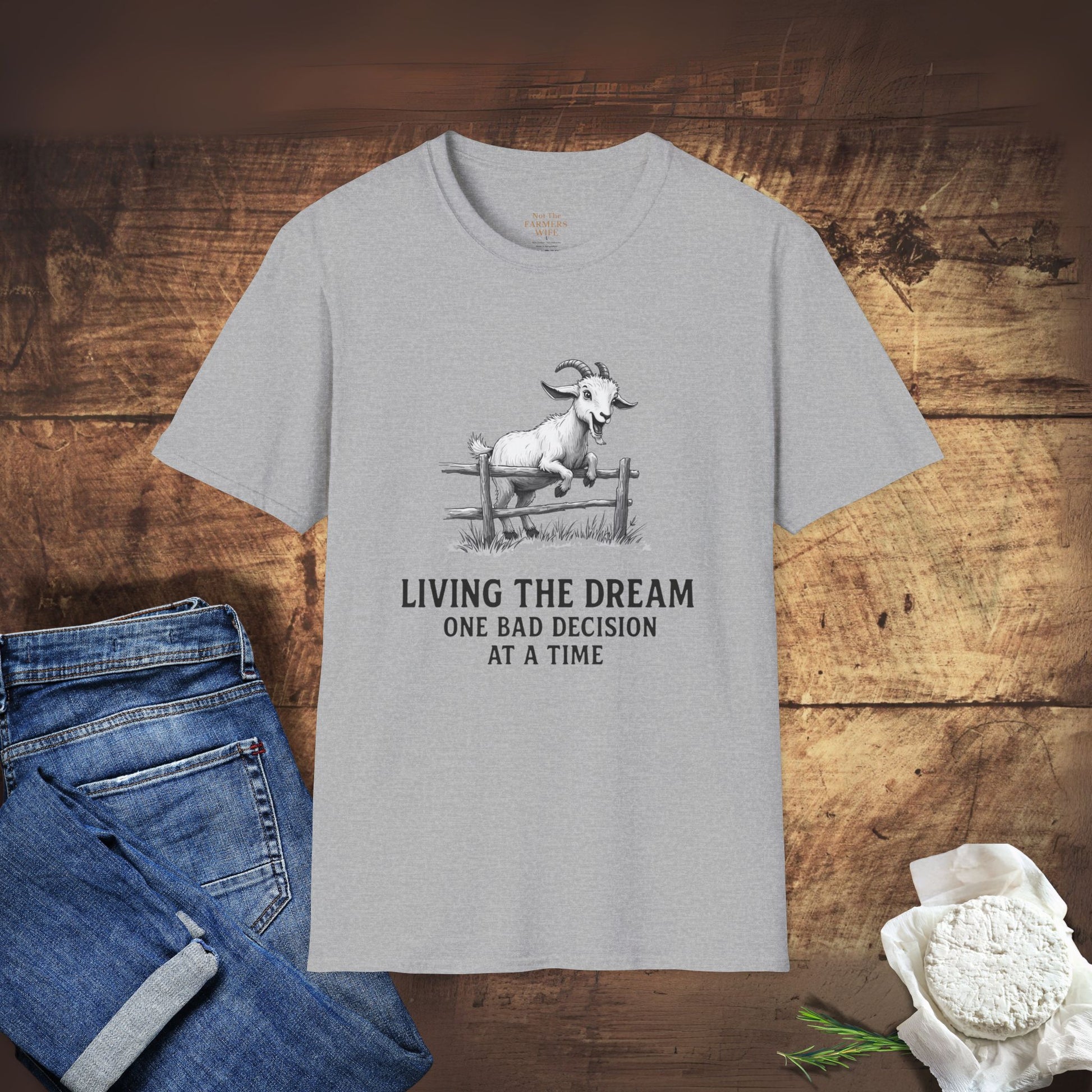 Ah, the farm life — equal parts magical and mildly disastrous. Featuring a goat mid-escape (and totally stuck), this tee is perfect for anyone who's just winging it with hay in their hair and a sense of humour. Soft, comfy, and made for those “what was I thinking?” kind of days.